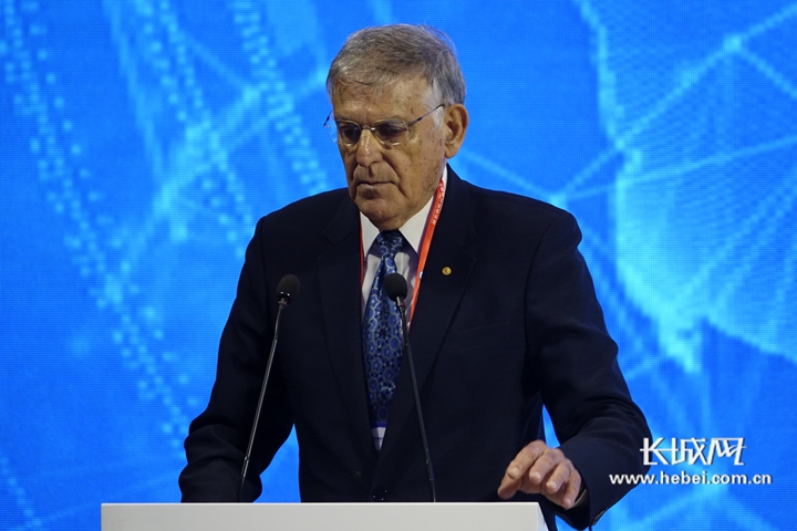 以色列諾貝爾化學(xué)獎(jiǎng)得主達(dá)尼埃爾謝赫特曼正在發(fā)表演講。記者張藝萌攝