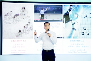 韓國VITRUV人工智能教育項(xiàng)目的創(chuàng)業(yè)團(tuán)隊(duì)成員金賢洙在介紹產(chǎn)品情況。