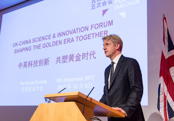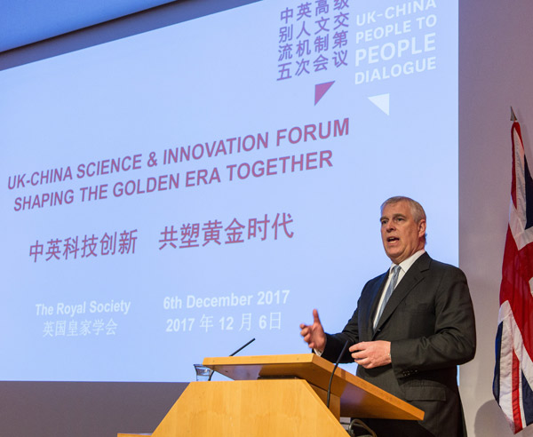 2017年12月6日,中國科學(xué)技術(shù)部與英國商業(yè)、能源和產(chǎn)業(yè)戰(zhàn)略部在英國皇家學(xué)會共同舉辦“中英科技創(chuàng)新合作:共塑黃金時代”論壇,該活動是中英高級別人文交流機制第五次會議的重要活動之一。國務(wù)院副總理劉延?xùn)|、科技部黨組書記、副部長王志剛與英國約克公爵安德魯王子、英國大學(xué)、科學(xué)、研究與創(chuàng)新國務(wù)大臣喬·約翰遜(Jo Johnson)等出席論壇致辭并參觀了中英科技創(chuàng)新成果展。