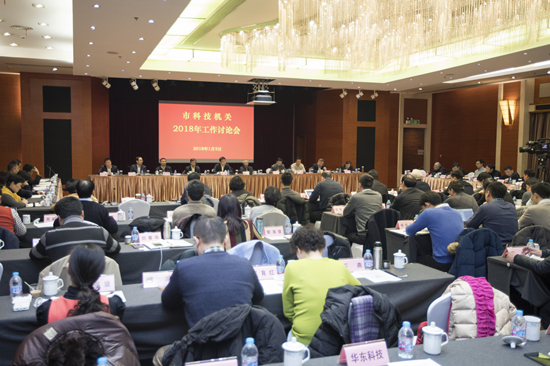 2018年1月5日、8日,上海市科技機(jī)關(guān)召開2018年工作討論會(huì)?萍純晌I(lǐng)導(dǎo)及各處室圍繞貫徹落實(shí)黨的十九大精神,進(jìn)一步加強(qiáng)和改進(jìn)基層黨建、人才隊(duì)伍和文化建設(shè),落實(shí)全面從嚴(yán)治黨,奮力開創(chuàng)上?萍紕(chuàng)新事業(yè)新局面;推進(jìn)具有全球影響力的科技創(chuàng)新中心和科技創(chuàng)新“十三五”規(guī)劃發(fā)展建設(shè);增強(qiáng)干部能力、提高工作績(jī)效等重大全局性工作展開了討論并提出了2018年科技創(chuàng)新和黨的建設(shè)工作新思路。