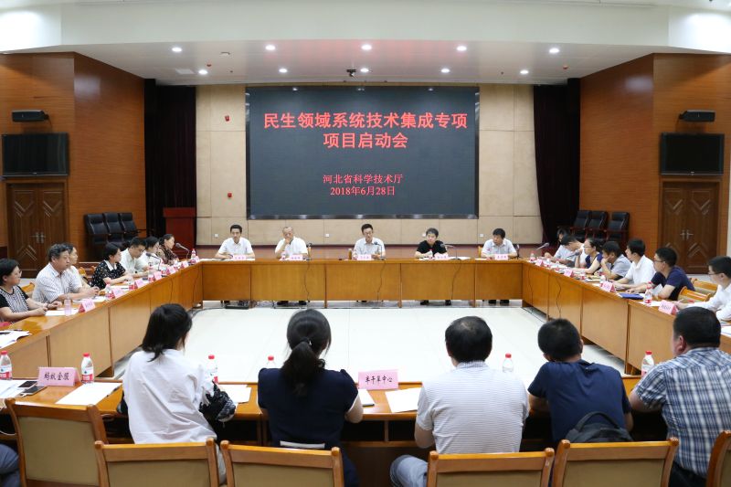為做好民生領(lǐng)域系統(tǒng)技術(shù)集成專項項目組織實施工作,6月28日,省科技廳在石家莊組織召開民生專項項目啟動會,馬宇駿廳長出席會議并講話,張永強(qiáng)副廳長主持會議。省公安廳、省住房城鄉(xiāng)建設(shè)廳,雄安新區(qū)改革發(fā)展局,石家莊市科技局等項目歸口管理部門和五十四所、省建筑科學(xué)研究院、螞蟻金服等項目承擔(dān)單位共35人參加會議。