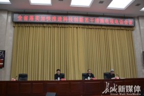 全省落實(shí)加快推進(jìn)科技創(chuàng)新若干措施電視電話會(huì)議現(xiàn)場。記者吳新光攝 長城新媒體10月22日訊(記者吳新光)日前,河北省出臺《加快推進(jìn)科技創(chuàng)新的若干措施》。省科技廳廳長馬宇駿對《加快推