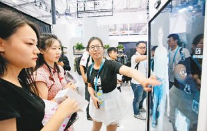 在上海2017年亞洲消費(fèi)電子展上,參觀者在體驗(yàn)一款可與電商平臺(tái)網(wǎng)絡(luò)連接實(shí)現(xiàn)試穿下單一體化的智能穿衣鏡。新華社記者方喆攝 去年5月,國(guó)家批準(zhǔn)建設(shè)了首批28家大眾創(chuàng)業(yè)萬(wàn)眾創(chuàng)新示范基地。